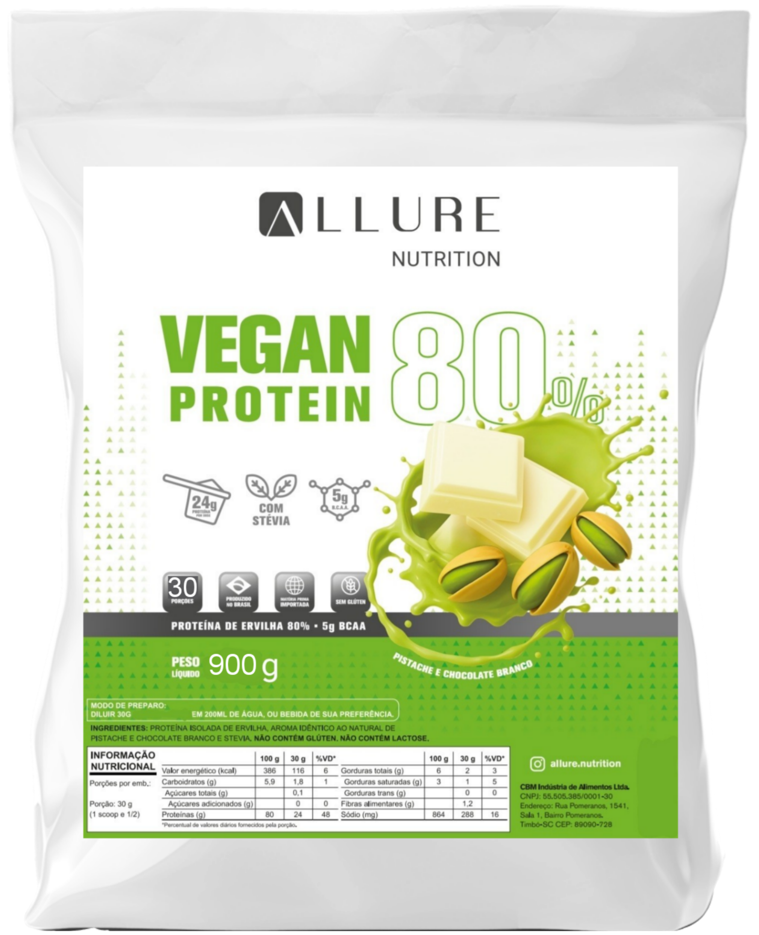 O Vegan Protein Allure Nutrition é um suplemento direcionado ao publico saudável, podendo ser utilizado por jovens, adultos e crianças, sedentários ou praticantes de atividade física. Ele pode ser utilizado como lanches, refeições noturnas ou mesmo café da manhã. Proporciona aumento de massa muscular (massa magra). É zero lactose e zero glúten.
