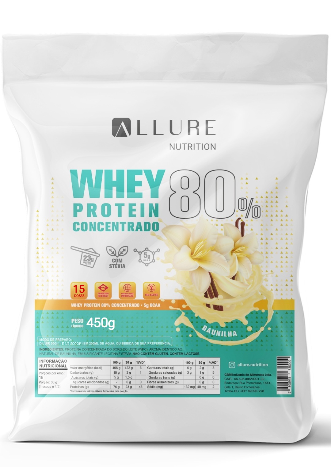 O Whey Protein Concentrado Allure Nutrtion tem altos teores de proteína e aminoácidos.